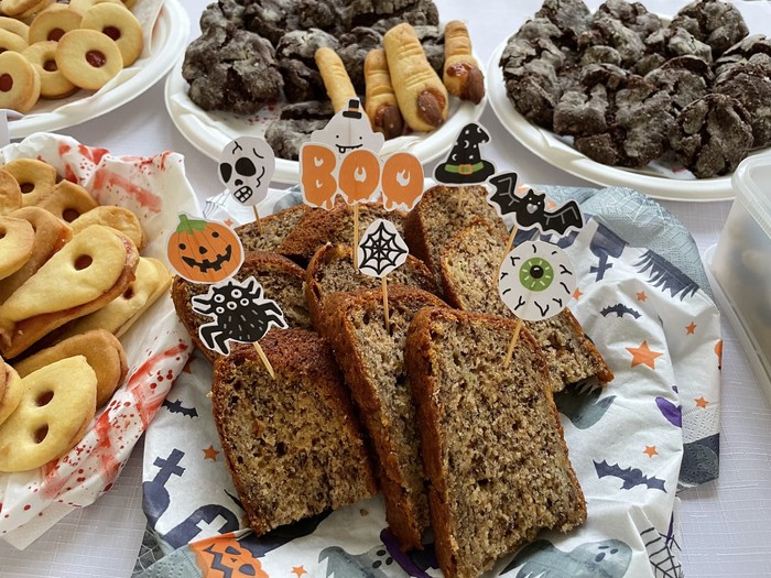 Celá škola byla nádherně nazdobena, což vytvořilo kouzelnou atmosféru. Žáci, rodiče i učitelé napekli báječné dobroty a Sára Janíková (HT3) a Jakub Ogurčák (KU3) připravili výborný halloweenský punč.