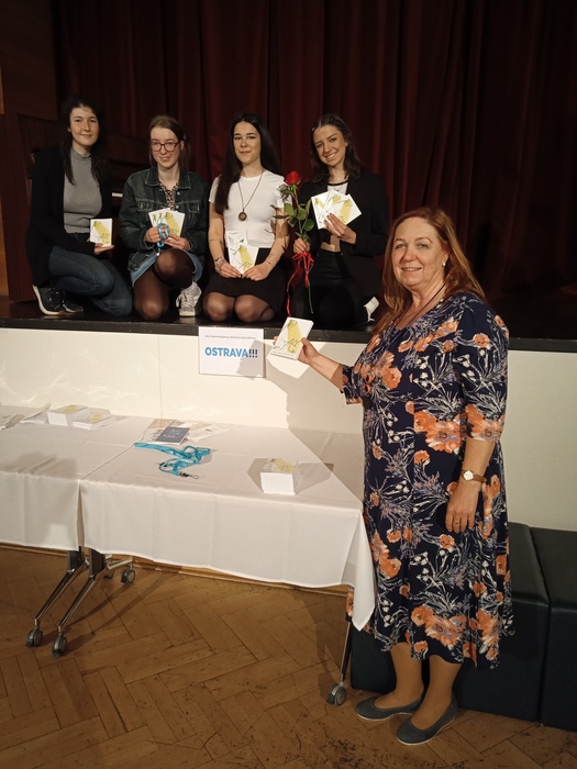 Vsadím se, že takový pocit zažily básnířky z naší školy ve středu 21. 5. 2025 ve Středisku volného času na Ostrčilově ulici v Ostravě při přebírání čerstvě vytištěného Almanachu žákovské a studentské poezie. Poprvé viděly své verše vytištěné ve veřejné publikaci zahrnující básně žáků z celého okresu Ostrava. Petra Kratochvílová ze třídy SČ3, Eliška Florková z PMP1, Klára Wasserbauerová z KPV3 a také Andrea Poštulková ze třídy SČ4 se v publikaci prezentují jednou, nebo dokonce třemi básněmi.
