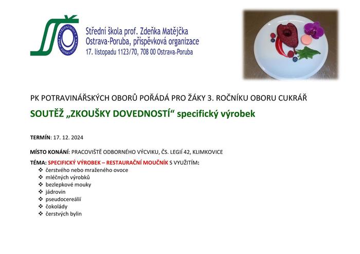 PK potravinářských oborů pořádá pro žáky 3. ročníku oboru cukrář soutěž „Zkoušky dovedností."